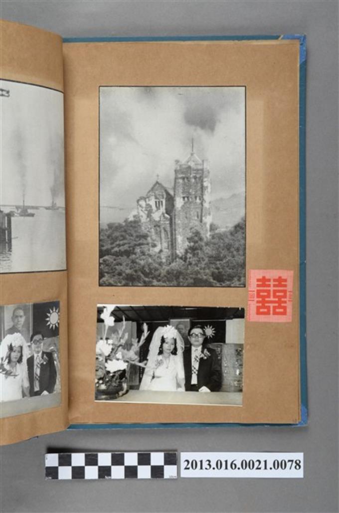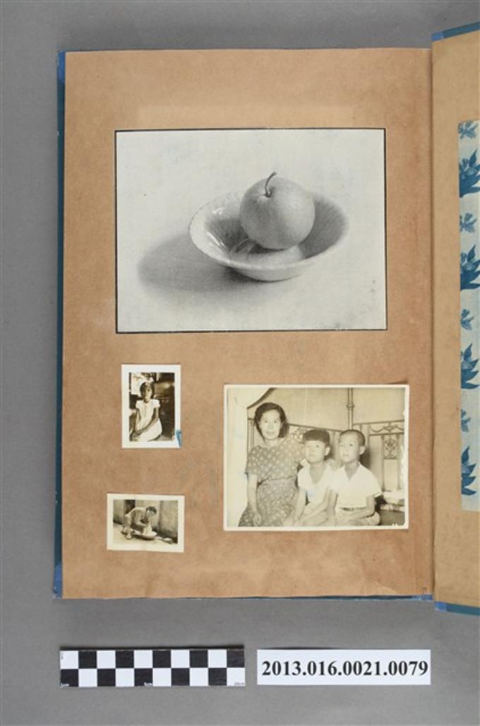 靜物剪報、陳美利獨照、陳崧波妻子洗衣照與陳崧波妻子和陳義鴻陳新平兄弟合照4張