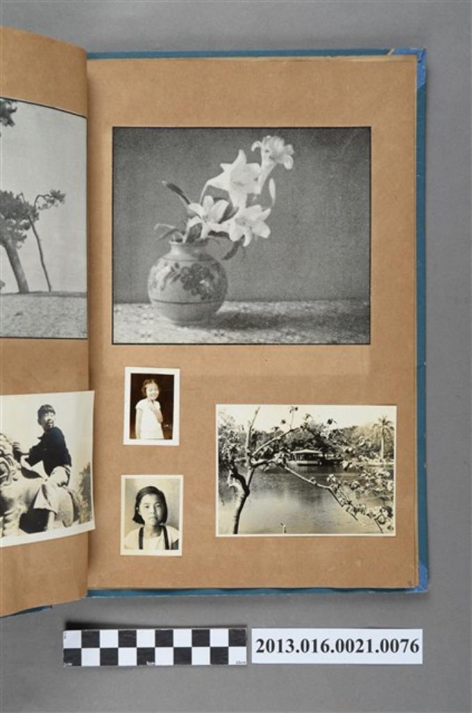 百合於花瓶靜物照、陳美麗獨照和大頭照與湖邊風景照4張