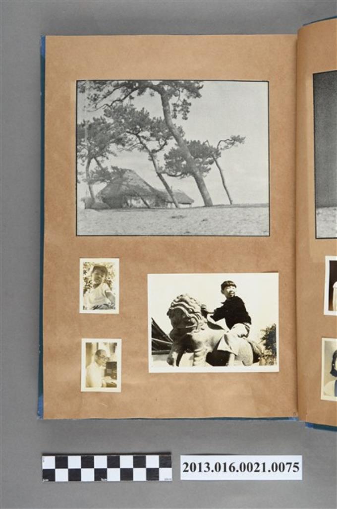 鄉村景色剪報、男童獨照、陳崧波獨照與男童騎石獅照4張