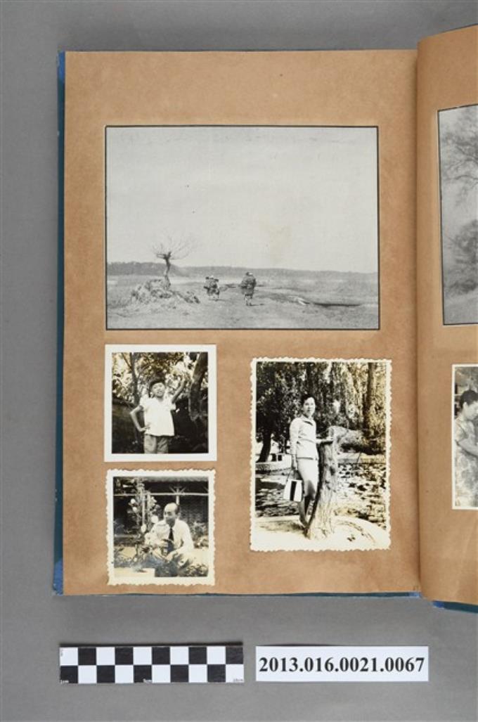 鄉間小路剪報、陳新平獨照、陳崧波賞花獨照與陳崧波妻子獨照4張