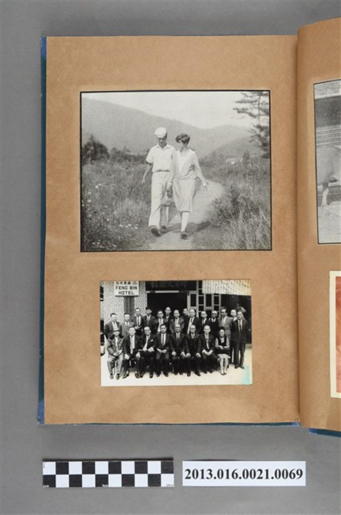 男女行走鄉間小路剪報與關子嶺峰賓大旅社前陳崧波和眾友人合照2張