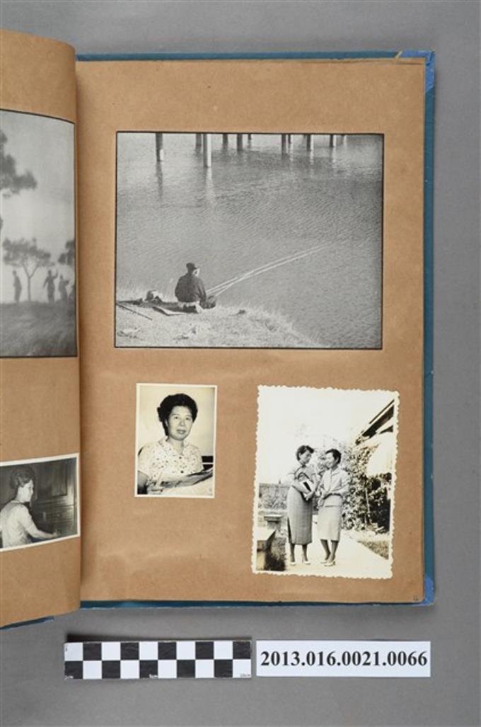 河邊釣魚男子背影剪報、陳崧波妻子獨照與陳崧波妻子和友人合照3張