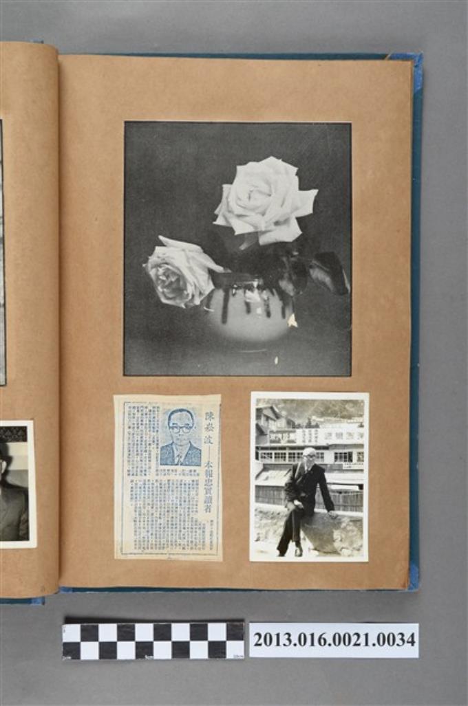薔薇於花瓶剪報、陳崧波本報忠實讀者剪報與關子嶺陳崧波獨照3張