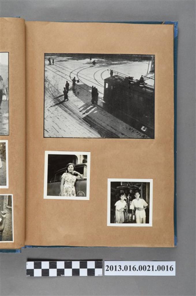 電車於雪地行駛剪報、女子獨照與陳崧波、少年和玻璃藝術品合照3張