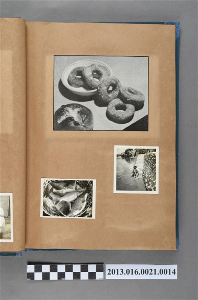 甜甜圈剪報、捕撈吳郭魚照與男童玩水照3張