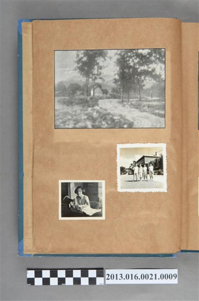 鄉間小路風景剪報、陳美惠縫紉衣物照與陳崧波、妻子和友人四人照3張