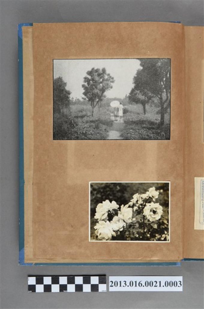鄉間小路女子兩人背影剪報與玫瑰照2張