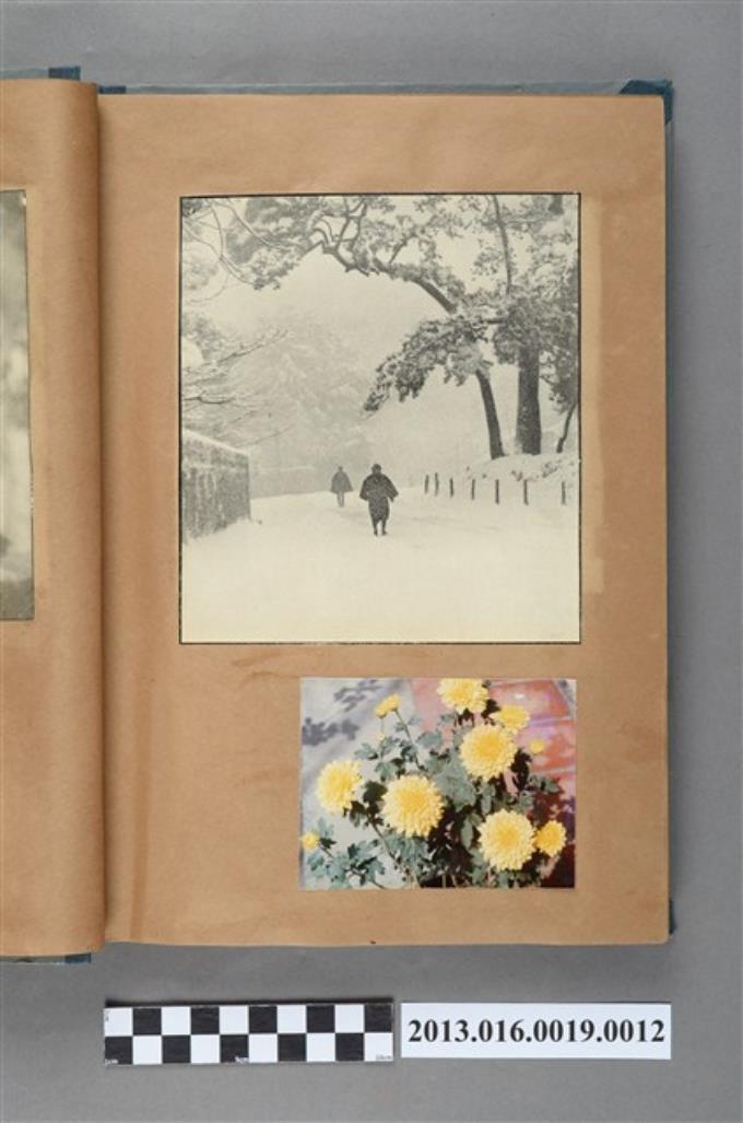 雪中行人剪報與菊花靜物照