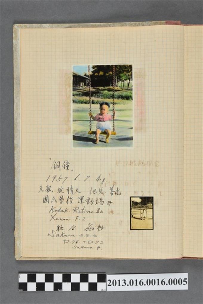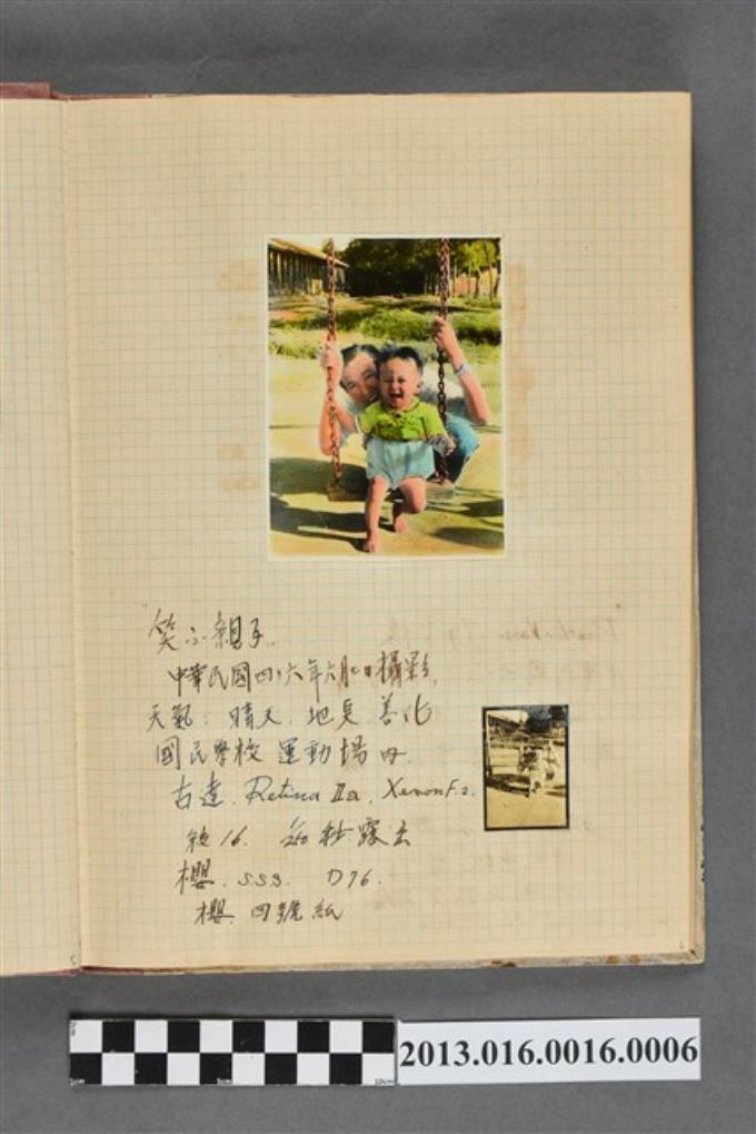 民國46年6月7日父子於善化國民學校運動場內盪鞦韆