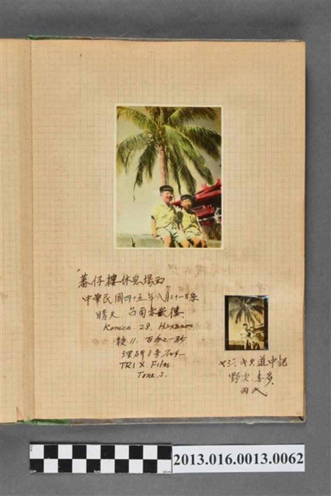 民國45年8月31日陳義鴻與陳新平於臺南赤崁樓庭院合照2張