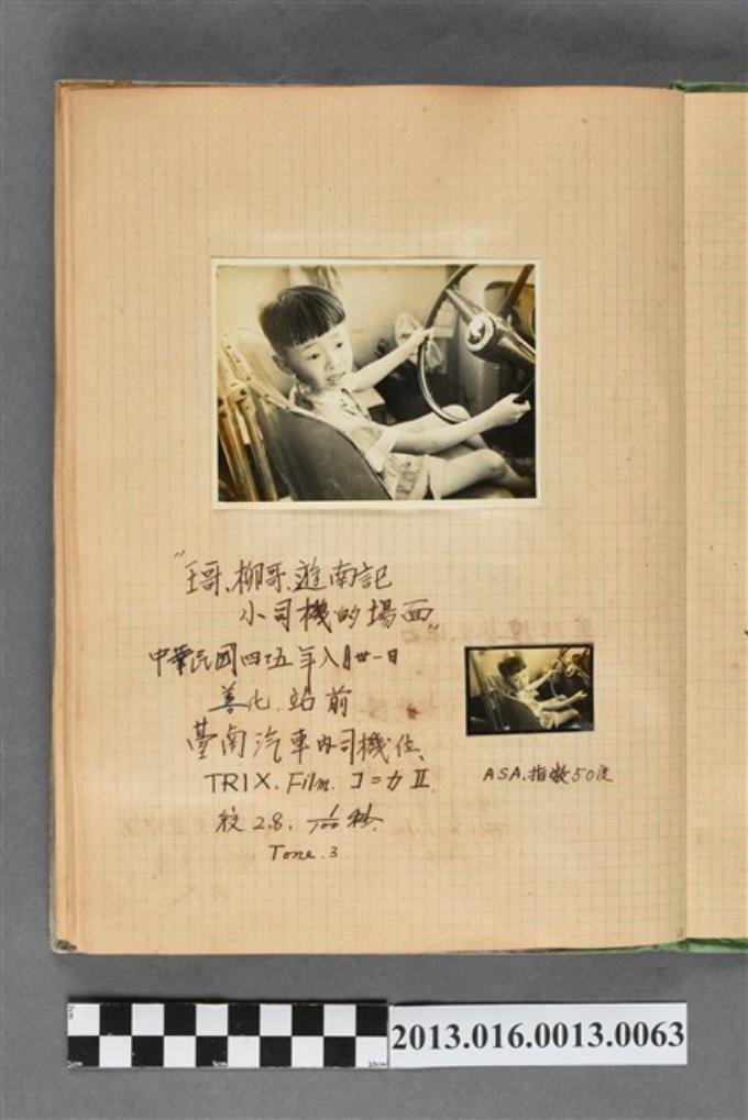 民國45年8月31日陳新平於善化站前汽車內獨照2張