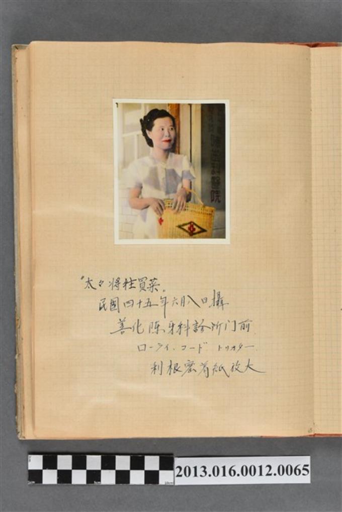 民國45年6月8日陳崧波妻子於善化牙科診所門前獨照1張