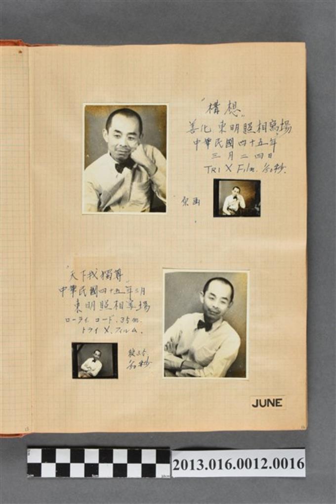 民國45年3月陳崧波於東明照相場獨照4張