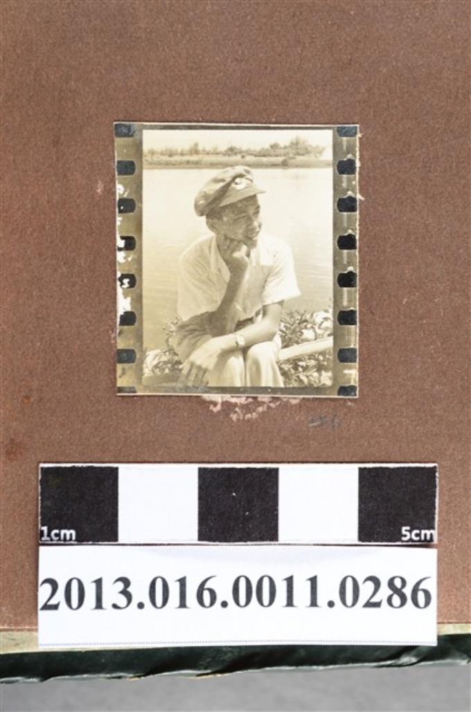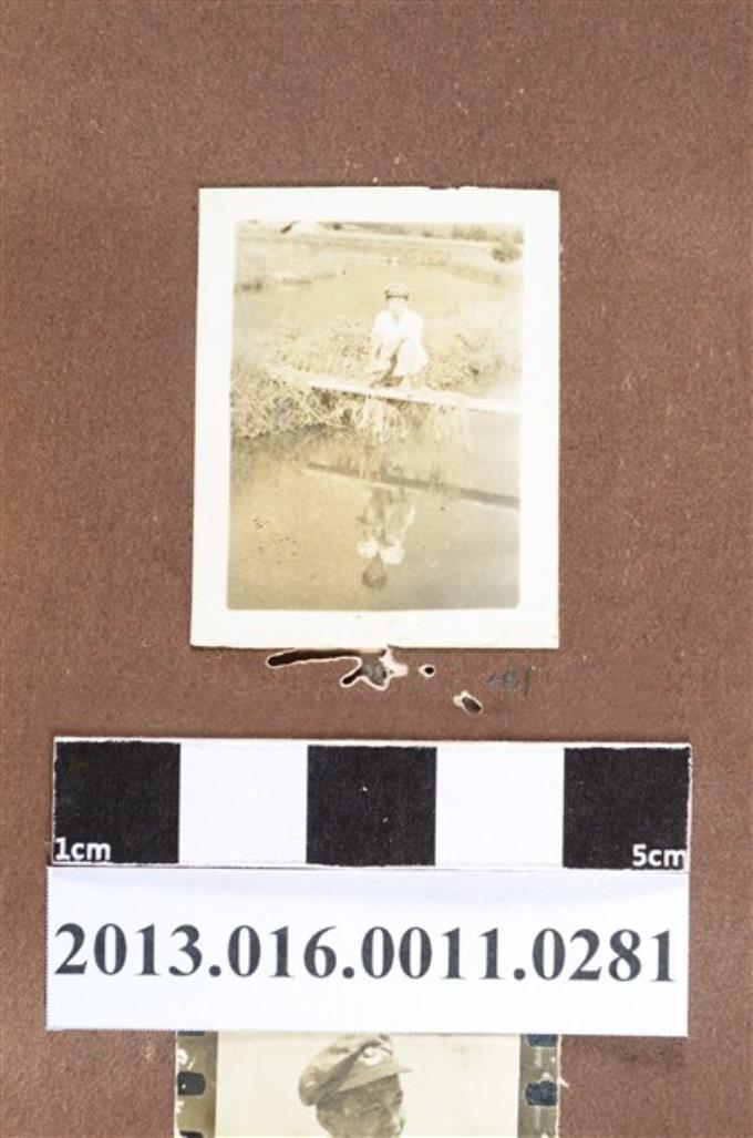 少年於田間小橋上獨照