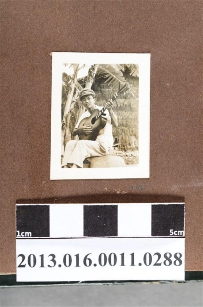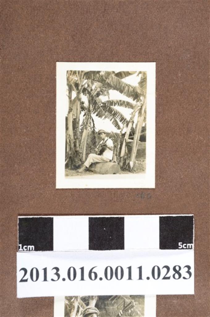少年坐於香蕉樹下彈吉他