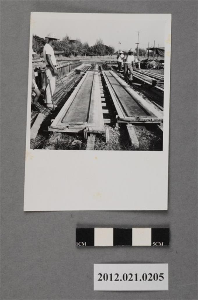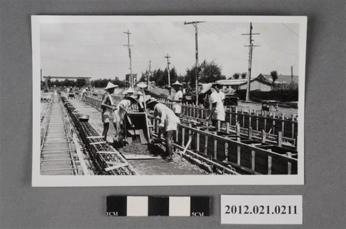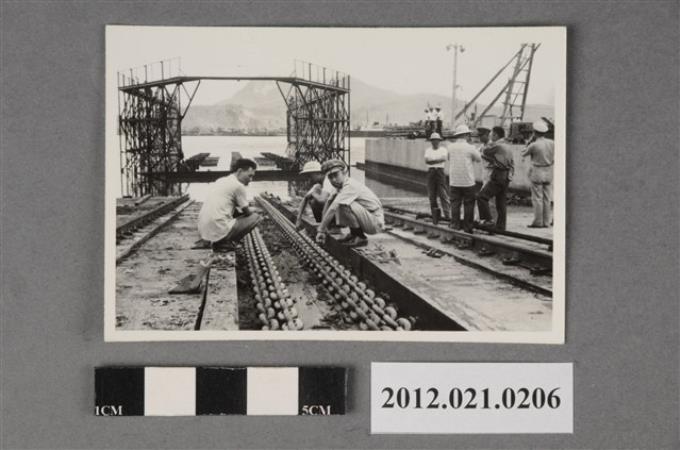 基地內短褲斗笠工人工作