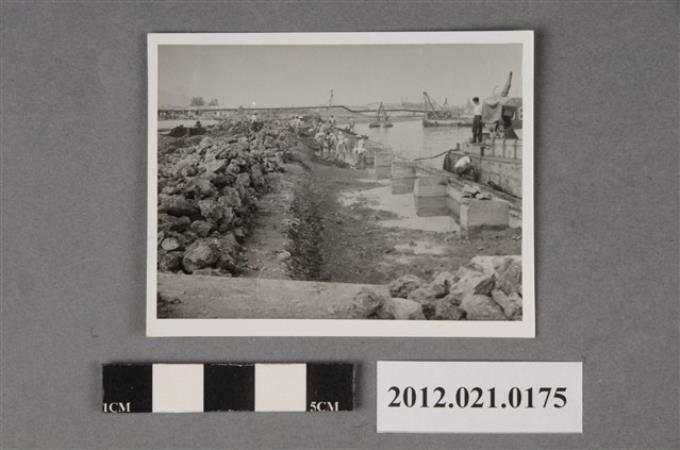 基地海邊工人石塊工程