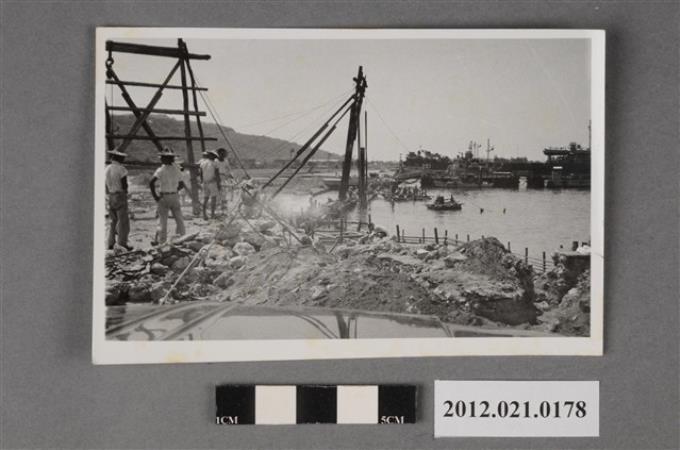 基地內工程海邊砂土堆工人