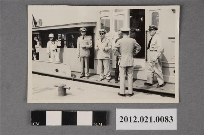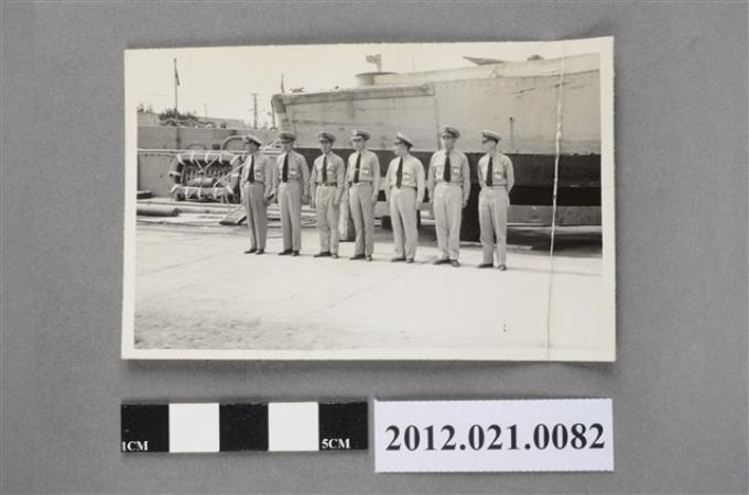 7位海軍軍官於船艦前合照