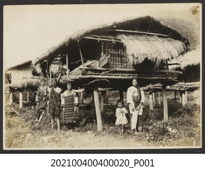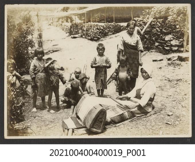 織布的泰雅族婦女與家人
