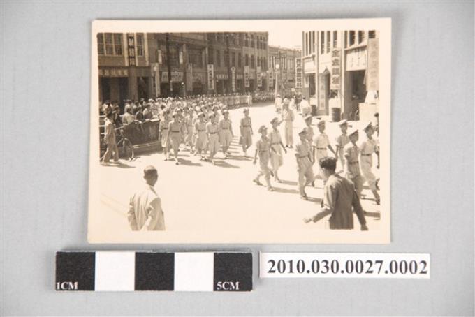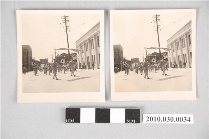 彰化地區慶祝國慶遊行隊伍手持「軍民合作」標語隊伍相片