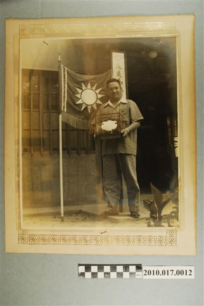 劉樹森與黨旗紀念合照