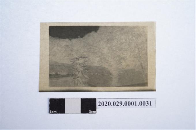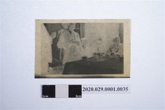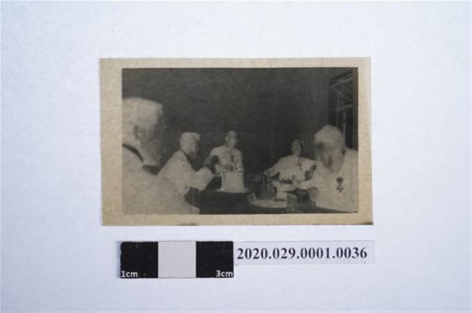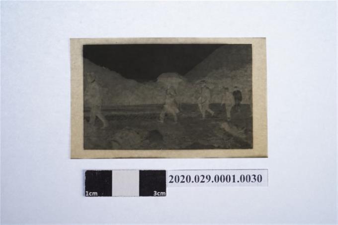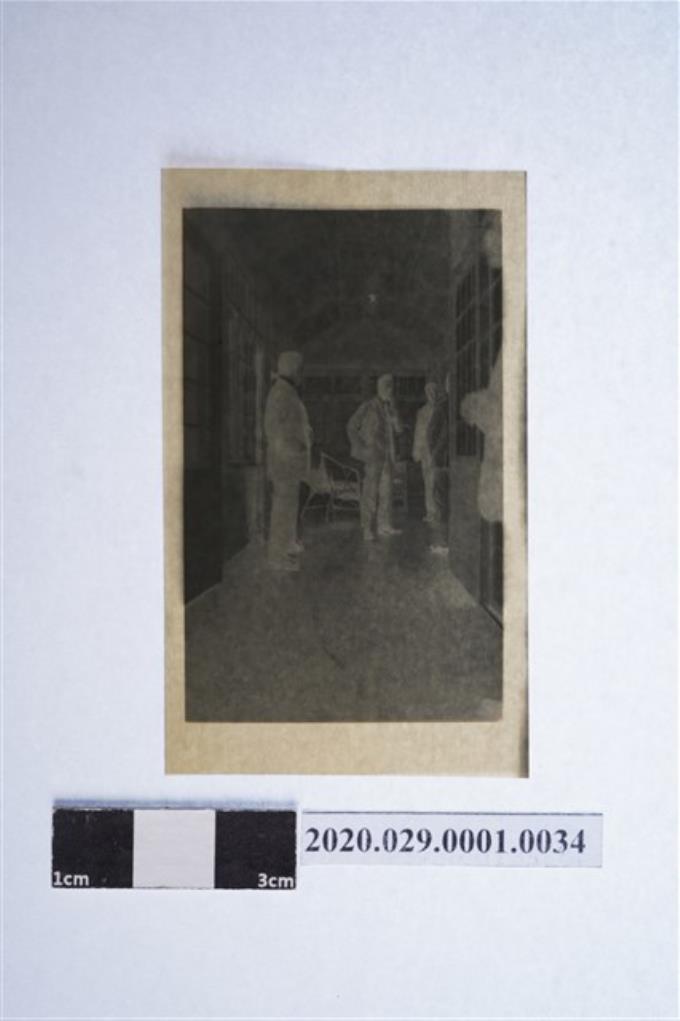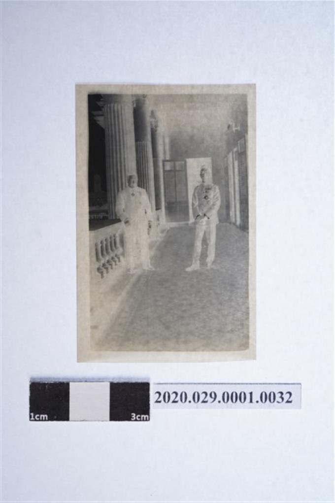 皇太子裕仁於北投草山御賓館庭院與官員撐傘步行