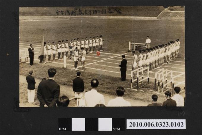 全臺灣對慶應大學陸上競技大會選手代表握手致意