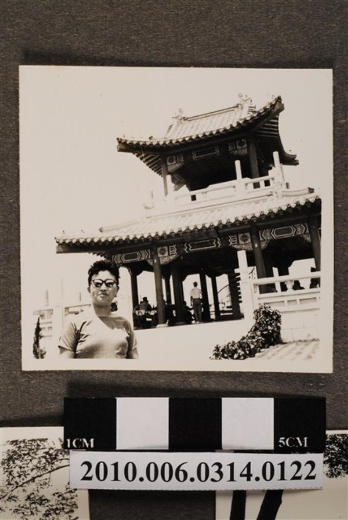 女子於澄清湖豐源閣獨照