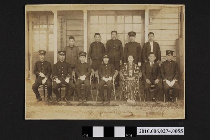 十二人於嘉義郡白芒埔警察官吏派出所前合照