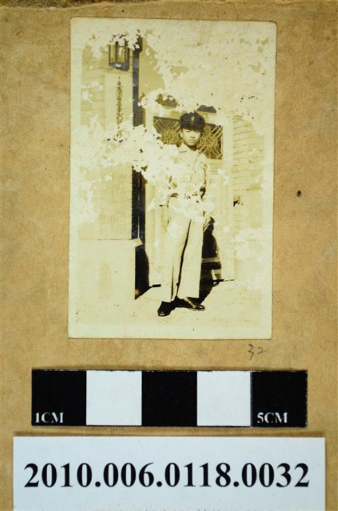 一男子頭戴學生帽身穿制服獨影之照片