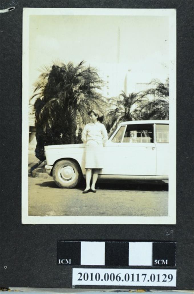 一女子倚車獨照
