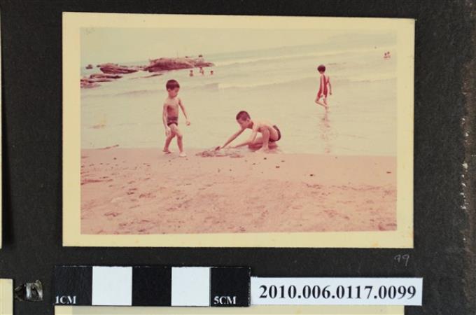 二位男童在沙灘玩耍的照片