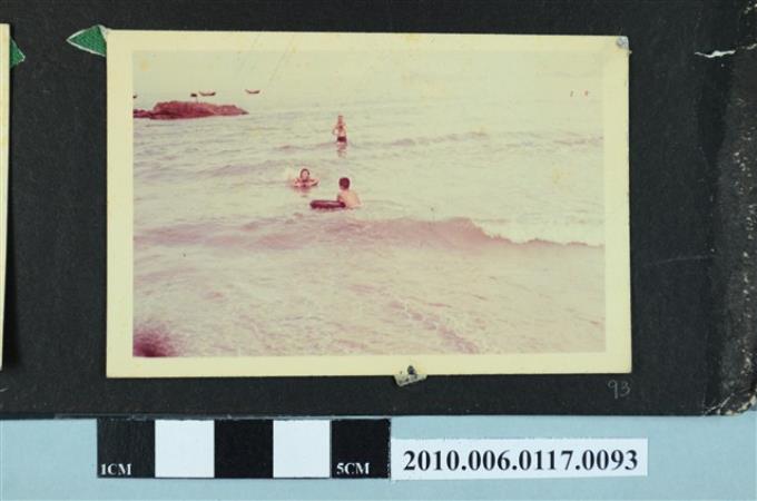 三人在海邊戲水的照片