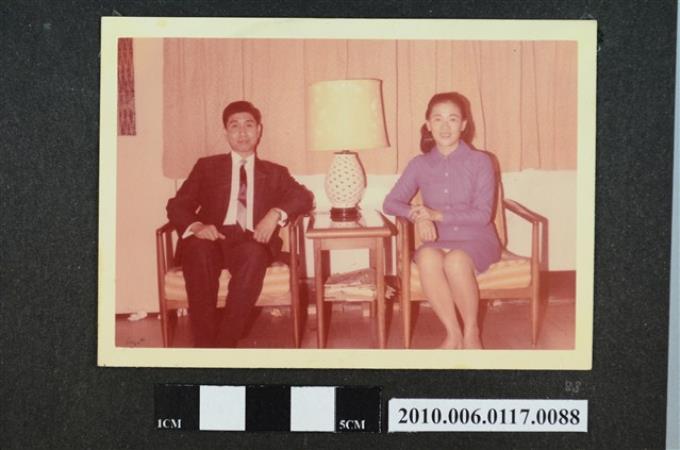 一男一女坐於椅上合影之照片