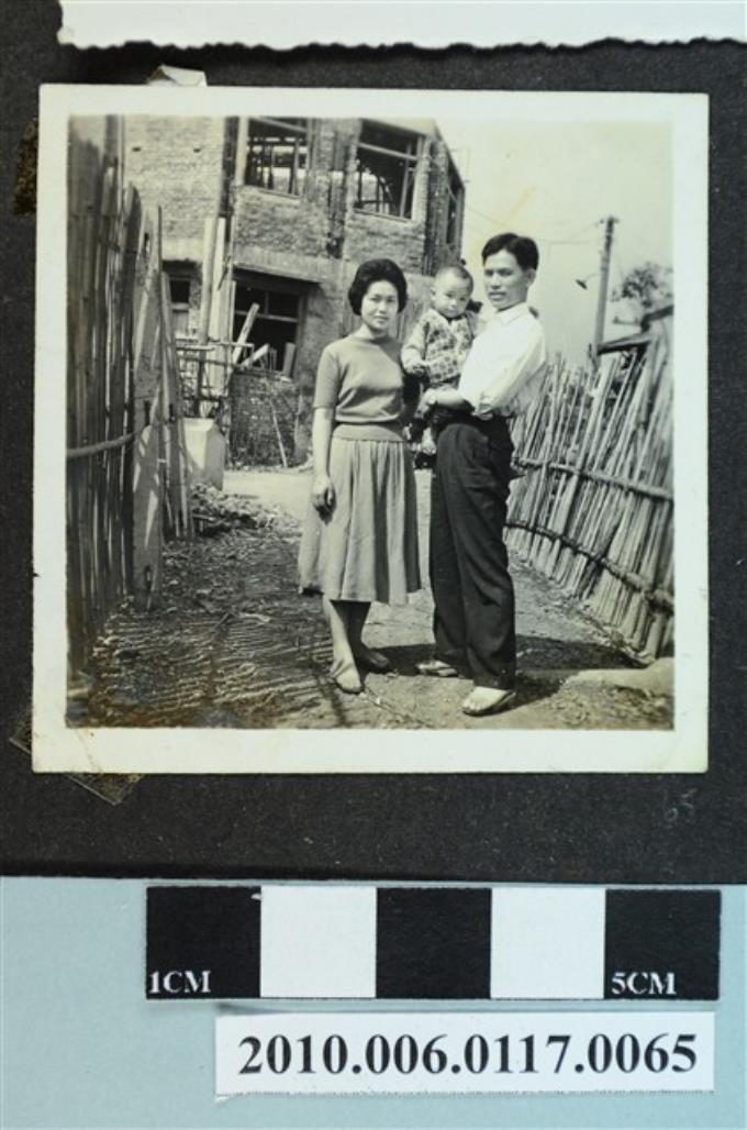 三人在巷道合影之照片
