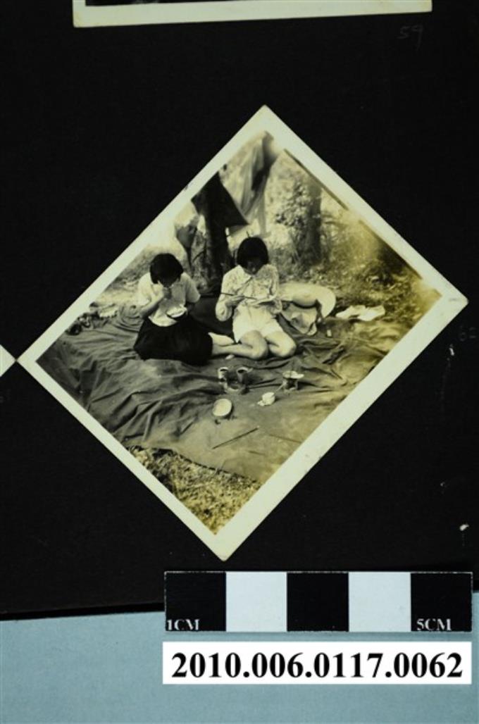 兩位女子在戶外野炊的照片