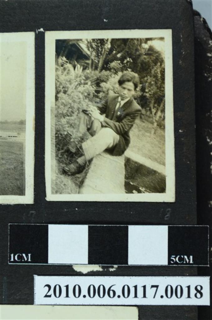 一男子坐於石階上之獨照