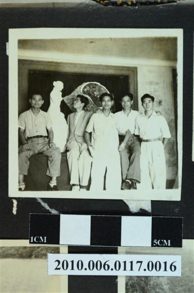 五位男子於畫作合影之照片