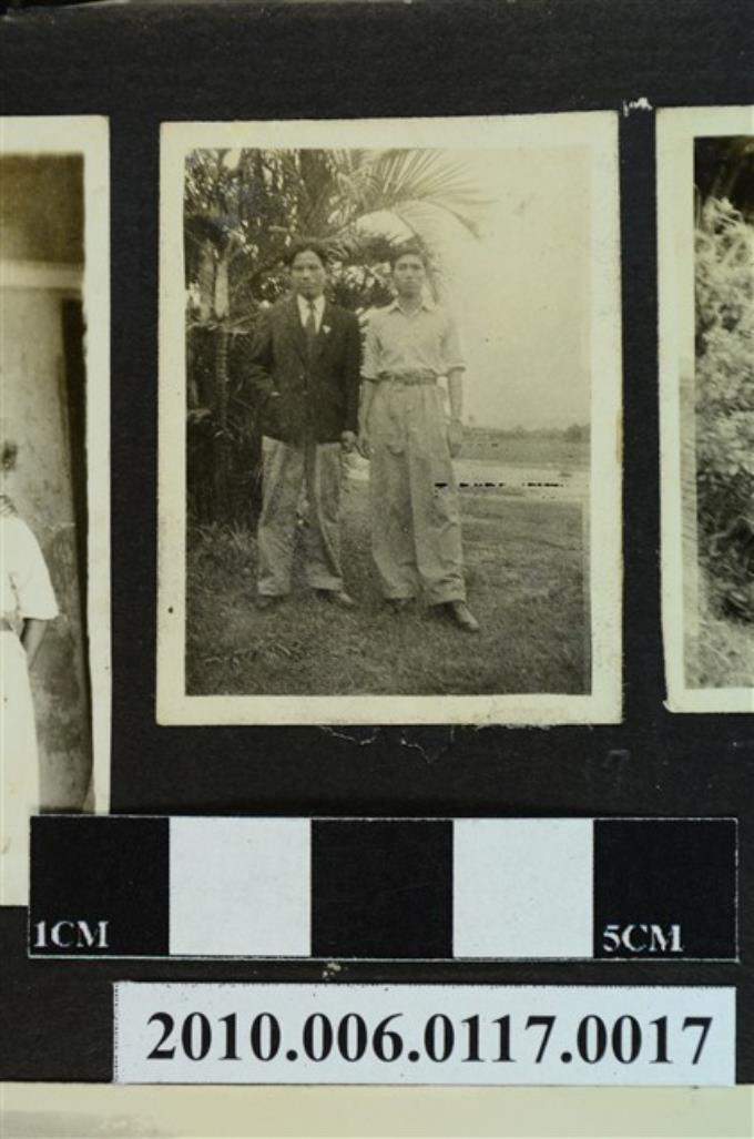 兩位男子於樹叢合影之照片