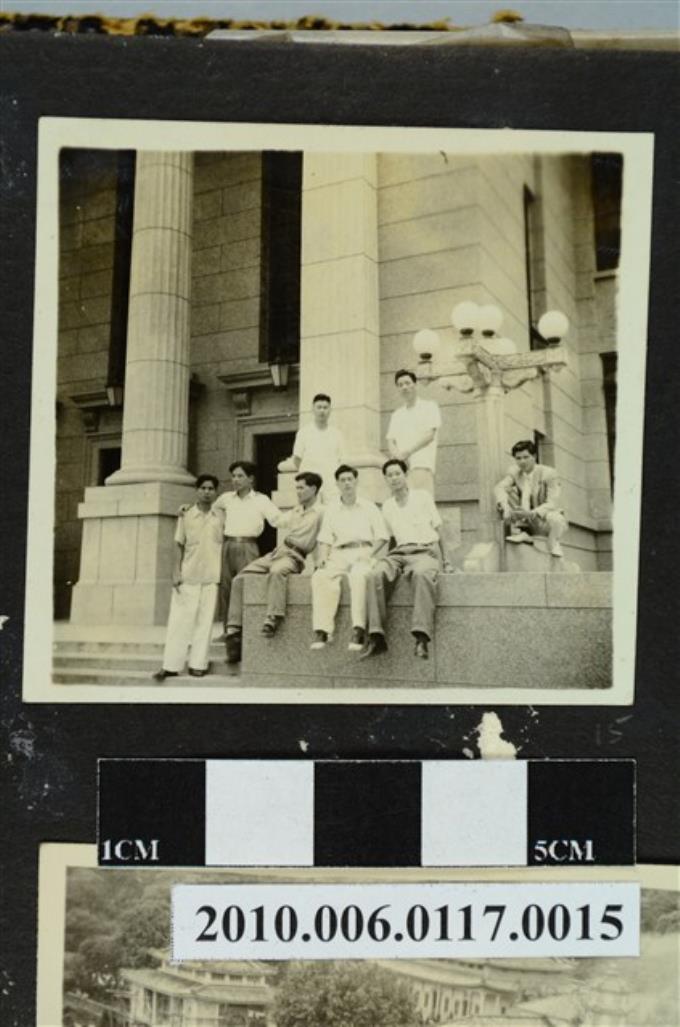 八位男子於建築物階梯上合影之照片