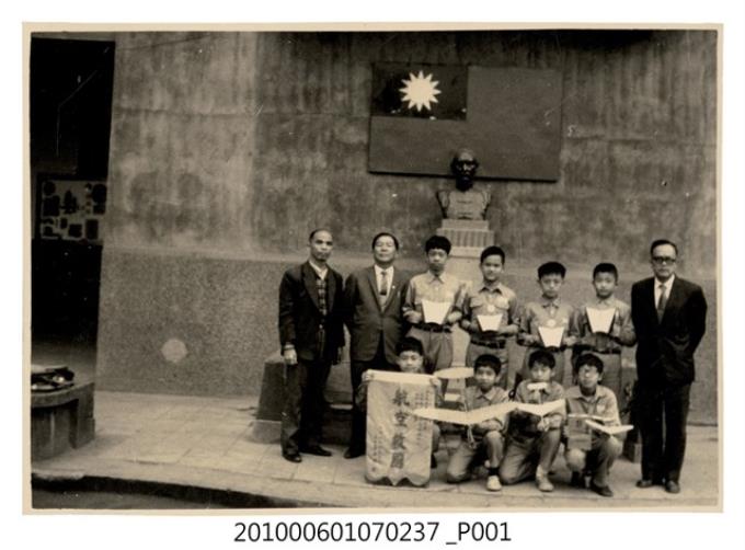 民國63年3月9日臺北市國民小學航空模型飛行競賽大會獲冠亞軍紀念合照