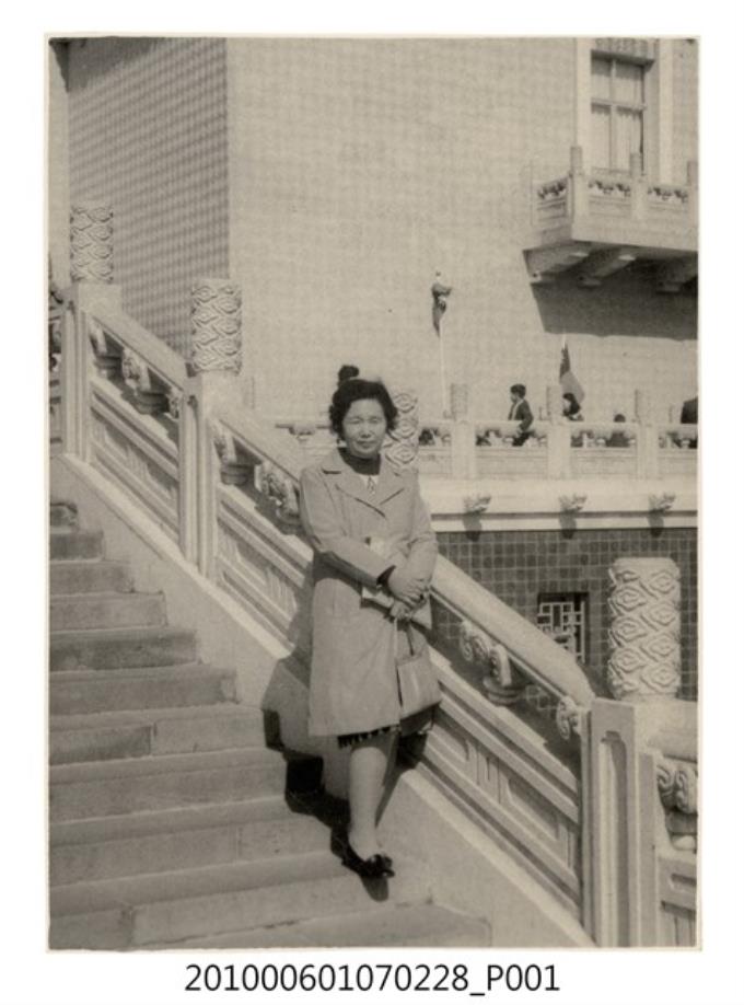 民國六十三年元旦唯岡氏夫人於故宮博物院獨照
