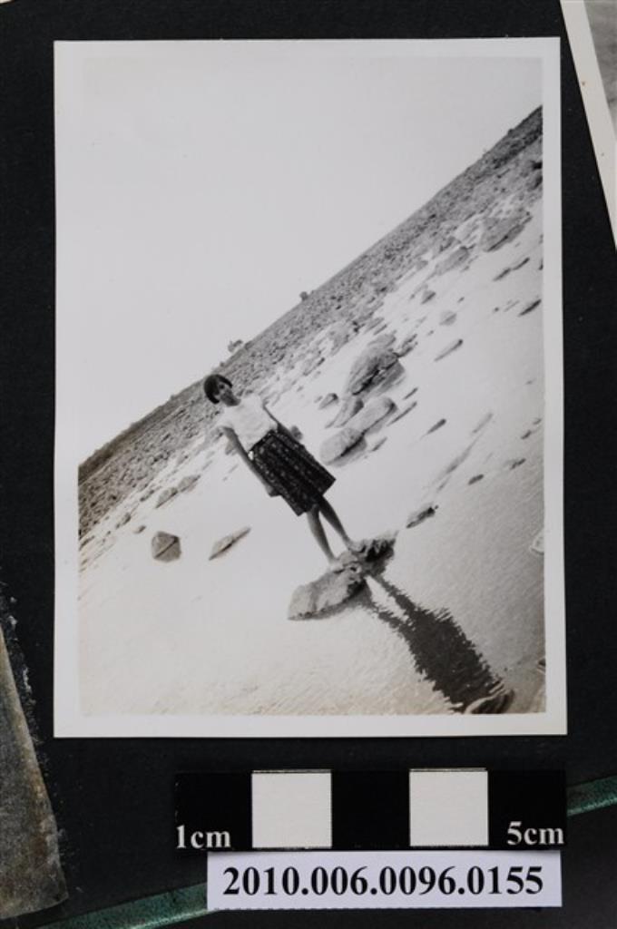 一女子在溪床石頭上獨影之照片