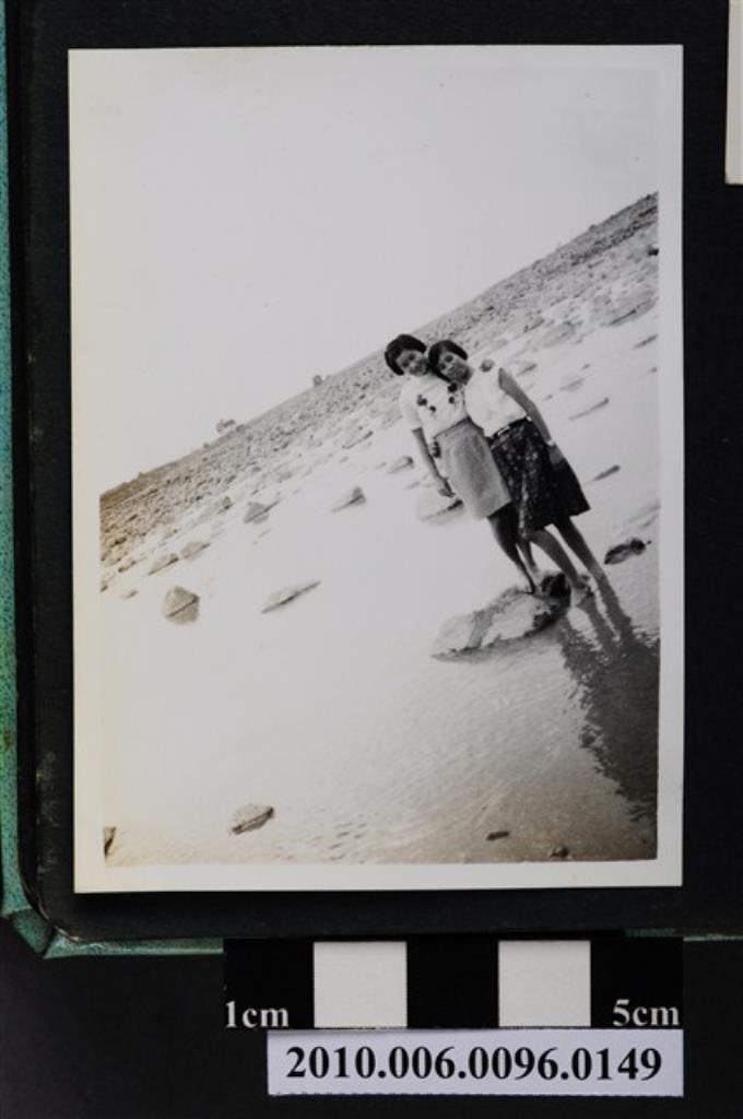 二位女子在溪床石頭上合影之照片
