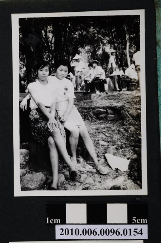 二位女子人坐在戶外合影之照片