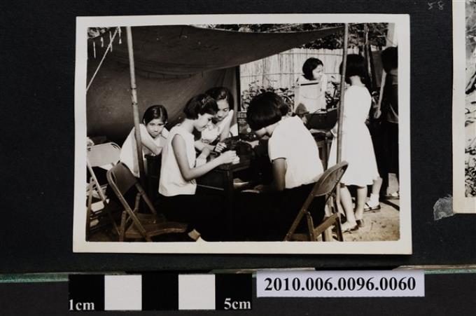 一大群女學生露營活動之照片