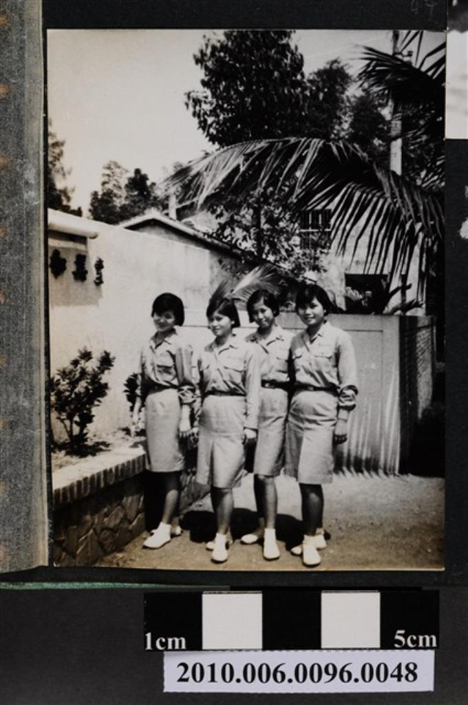 四位身穿屏東女中軍訓服女子站立合影之照片