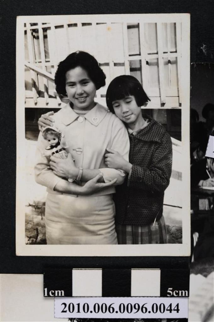 二位女子站立於屋外窗前合影之照片