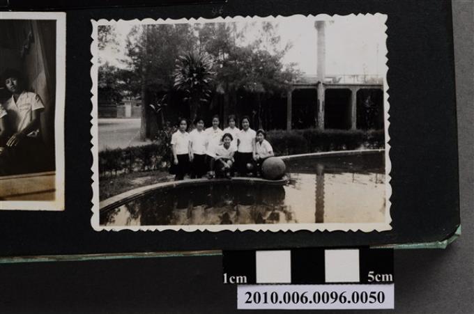 七位女子於水池旁合影之照片